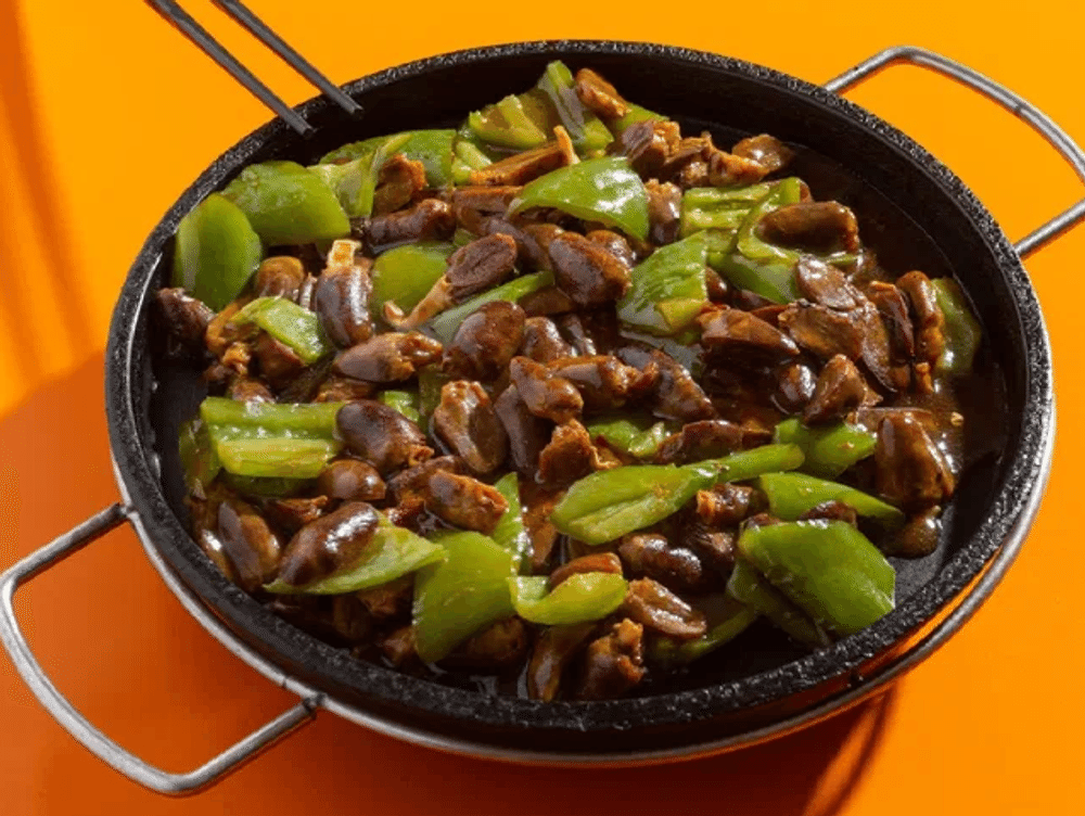 Острое блюдо! Сердечки куриные, острый перец, соус "Сковородка", острая паста, масло растительное