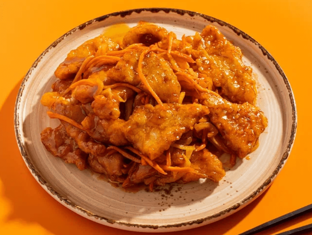 Куриное филе , соус "Гобаожоу", крахмал, масло растительное, морковь, лук репчатый