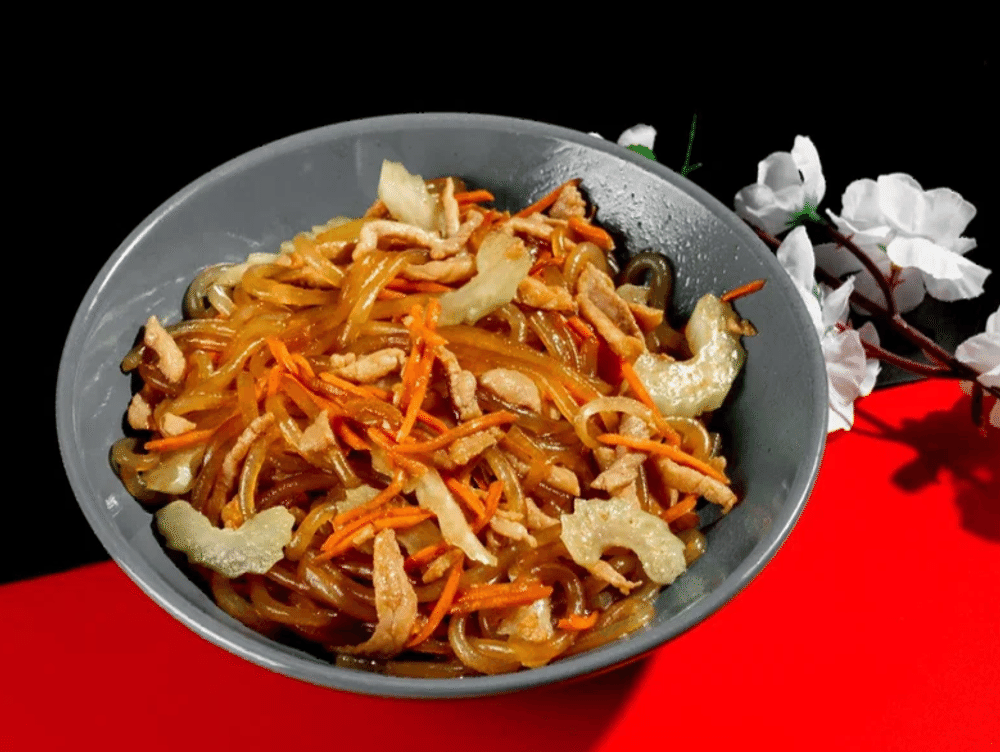 Фунчоза толстая, карбонат, сельдерей, морковь, лук репчатый, соевый соус, устричный соус, приправа "13", чеснок