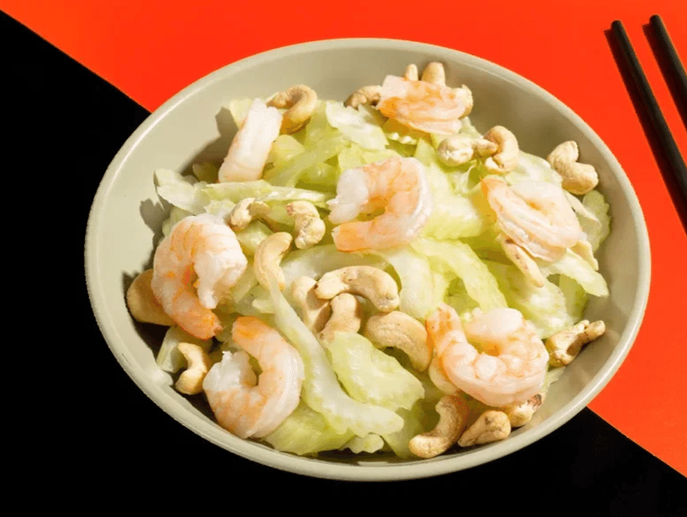 Салат сельдерей, креветки и кешью