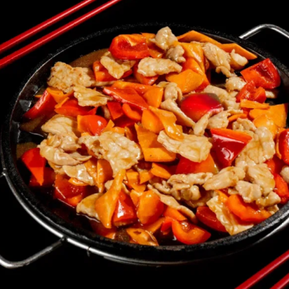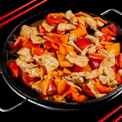 Соус "Сковородка", карбонат, масло растительное, болгарский перец, морковь, крахмал, чеснок